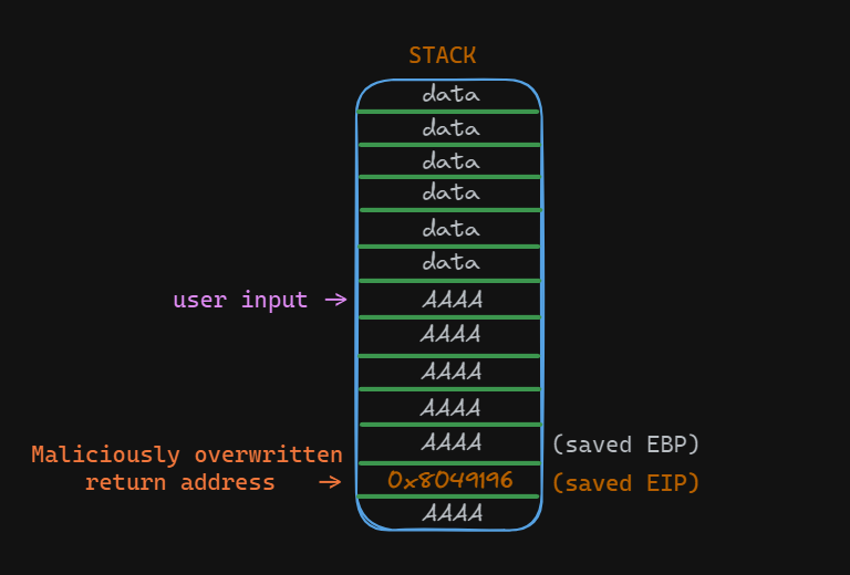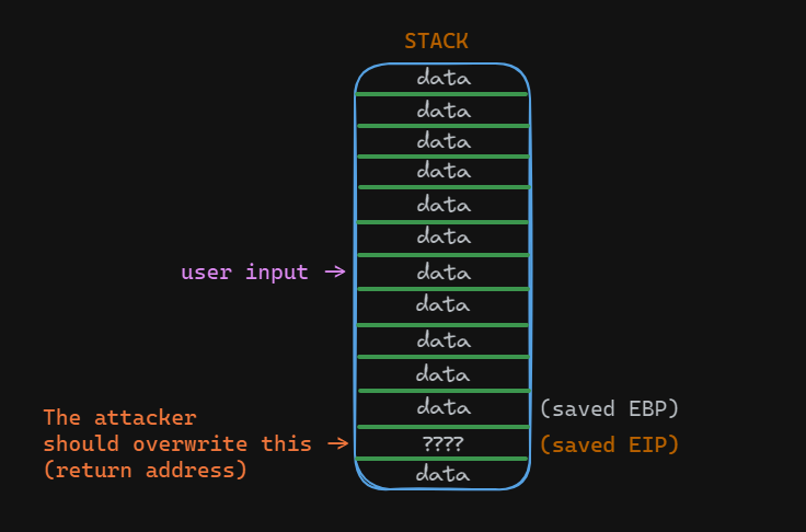 In stack-based buffer overflows, the attacker aims to overwrite the return address to control the instruction pointer and consequently alter the program flow. If you've read my article on Binary Exploitation Basics, you may already know that when a function is called, the memory address of the next instruction after the call instruction is pushed onto the stack. This allows the program to know where to return.