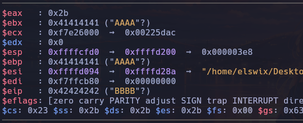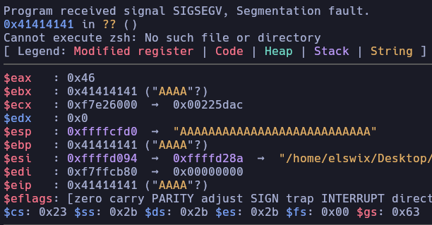 Starting program: /home/elswix/Desktop/elswix/Local/bufferoverflow-article/program